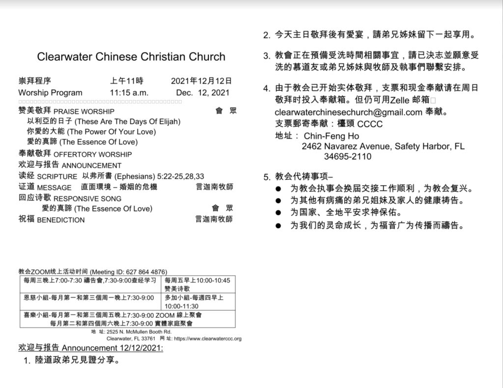 清水華人基督教會 Clearwater Chinese Christian Church